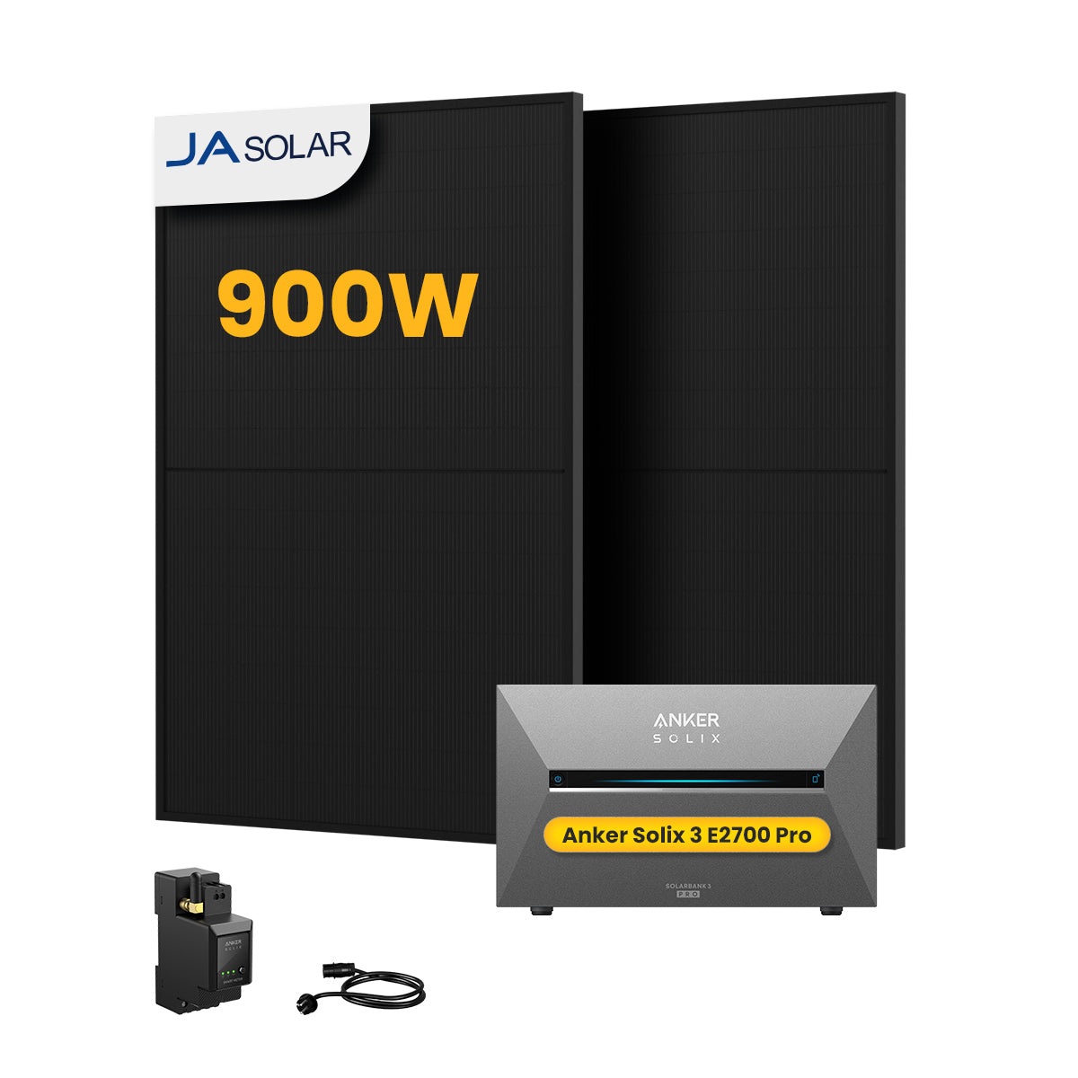 Anker SOLIX Solarbank 3 E2700 Pro, mit 2 x 450 JA Solar Bifaziale Solarmodule, by Powerness - 2.7kWh / 1 x Smart Meter / Selbstabholung
